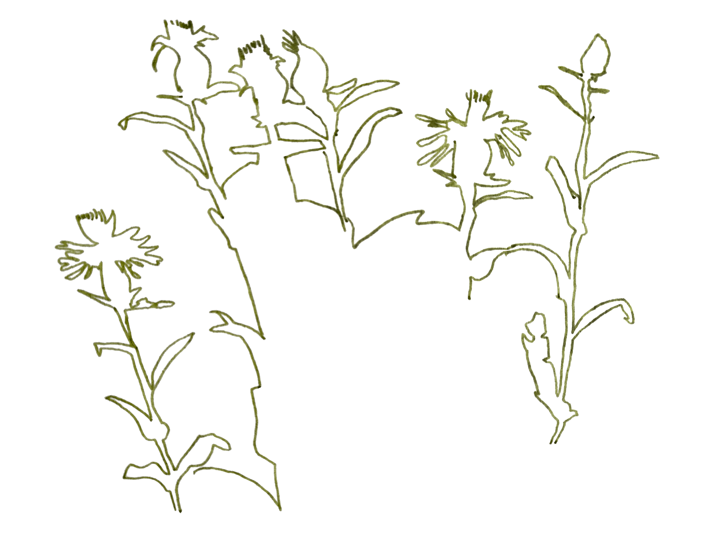 Today I took my curiosity for a walk. What are those plants with the purple blooms? Why are some of them in different states of bloom and decay even though they are more or less in the same spot? Would they be good sketching material for this afternoon? What if I sketched them along with these nearby little yellow blooms but at different scales to create something believable but that doesn’t actually exist?
